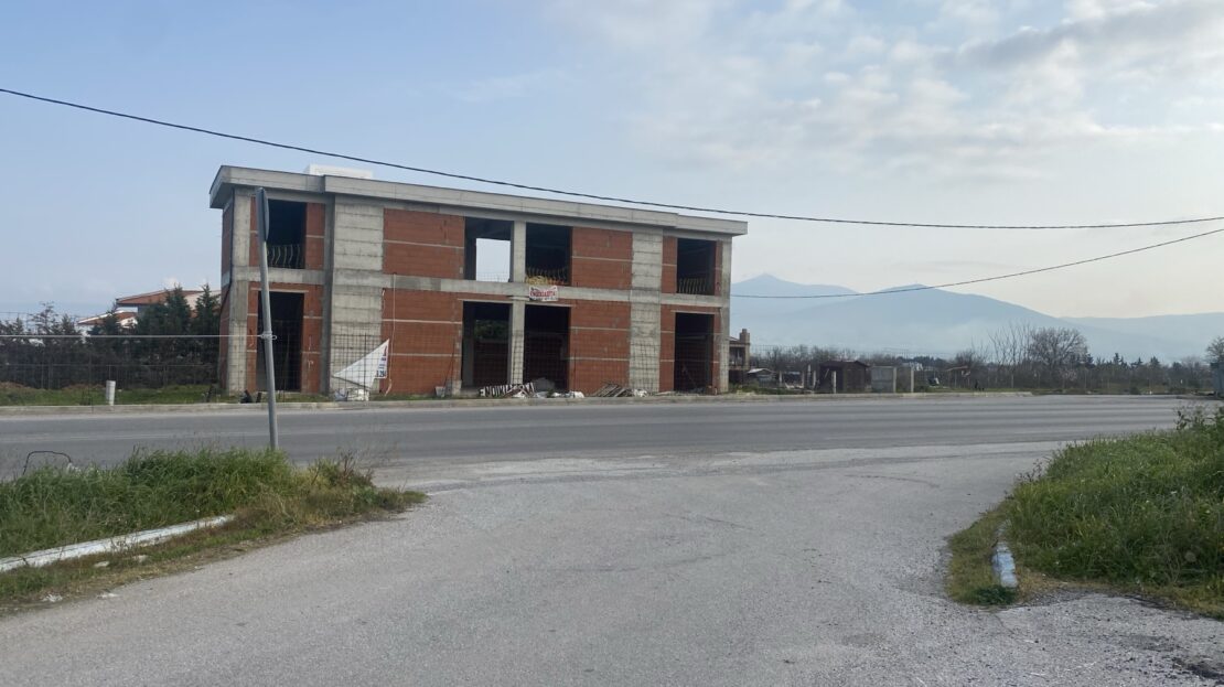 For rent a newly constructed commercial building in the final stages of completion, with a vehicle entry and exit road junction being developed. The building consists of three levels, 140m² each of open-plan space, including a 140m² basement with a vehicle ramp. The ground floor has a ceiling height of 4.80 meters, allowing for the construction of a mezzanine, and it also includes 3 WCs and an elevator shaft. The property is located on a 1,500m² plot with frontage on the Tagarades-Souroti provincial road.