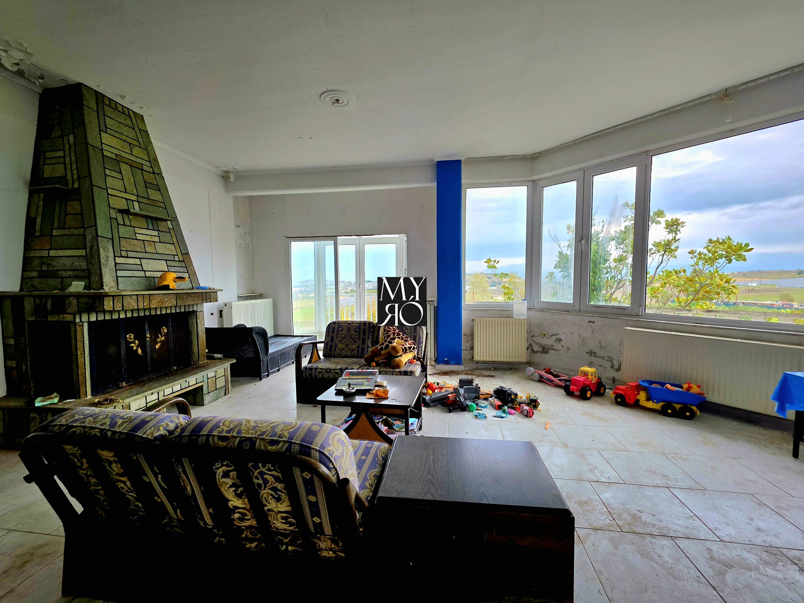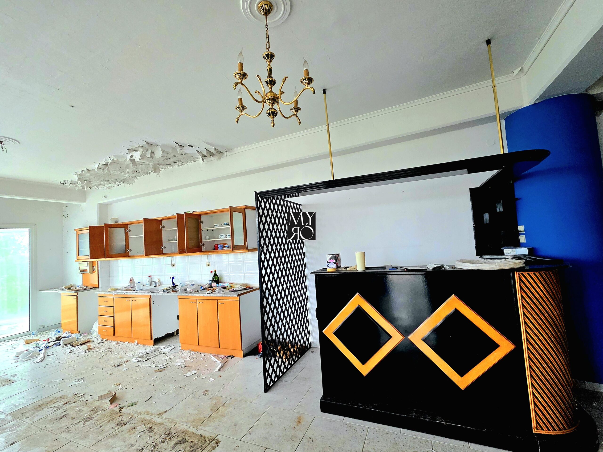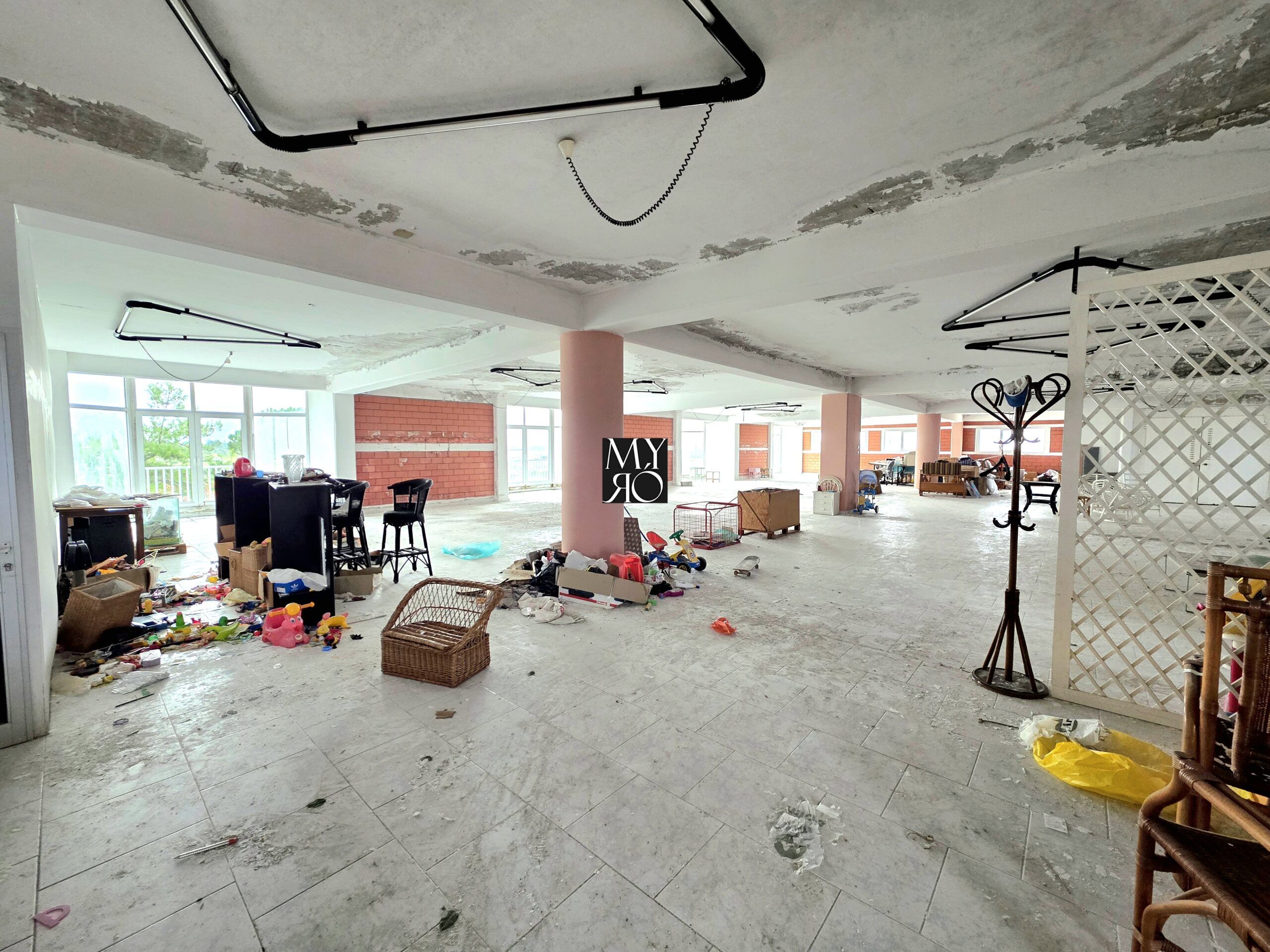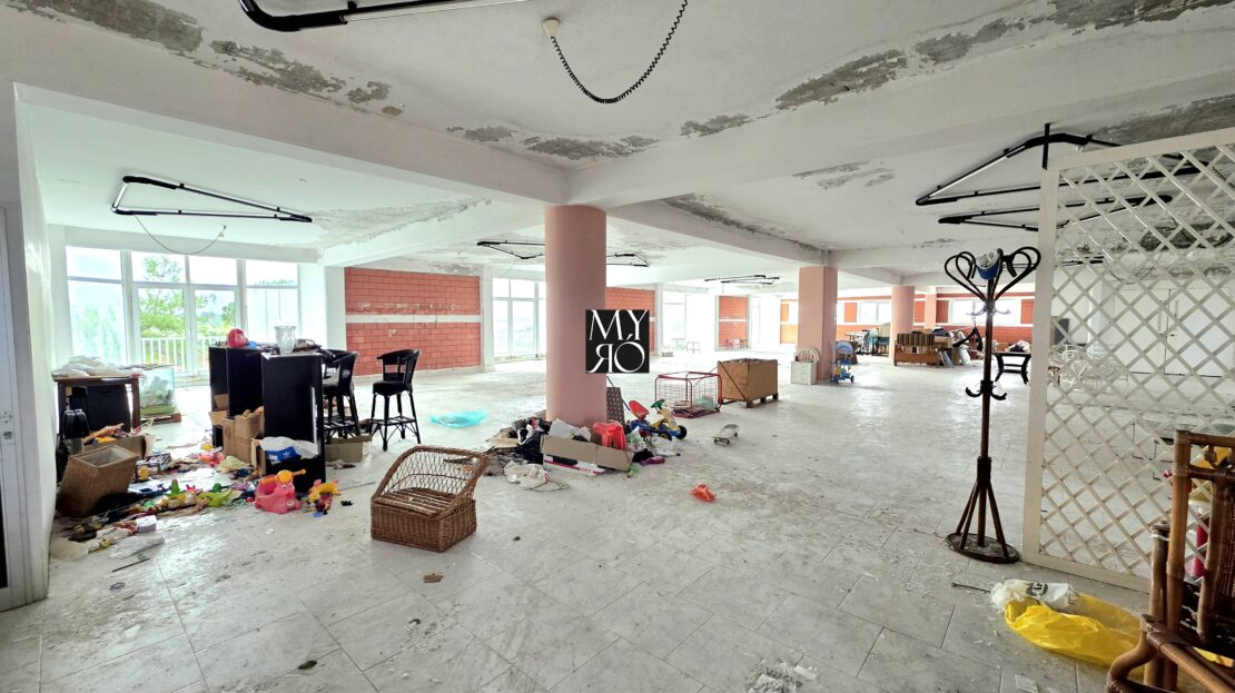On the first floor, there is an integrated 150m² apartment, featuring: 3 bedrooms, Open-plan living room and kitchen with fireplace and a bar, 2 bathrooms, a balcony and a storage room.
